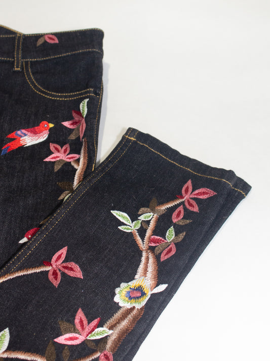 Alice + Olivia Embroidered Floral Skinny Straight Leg Jeans (Dark Wash) Size 28