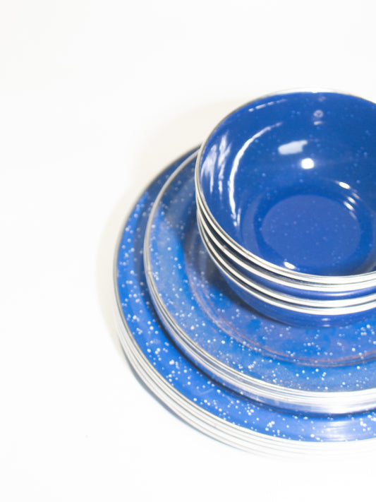 Vintage Classic 1990’s Blue Speckled Metal Coffee Set