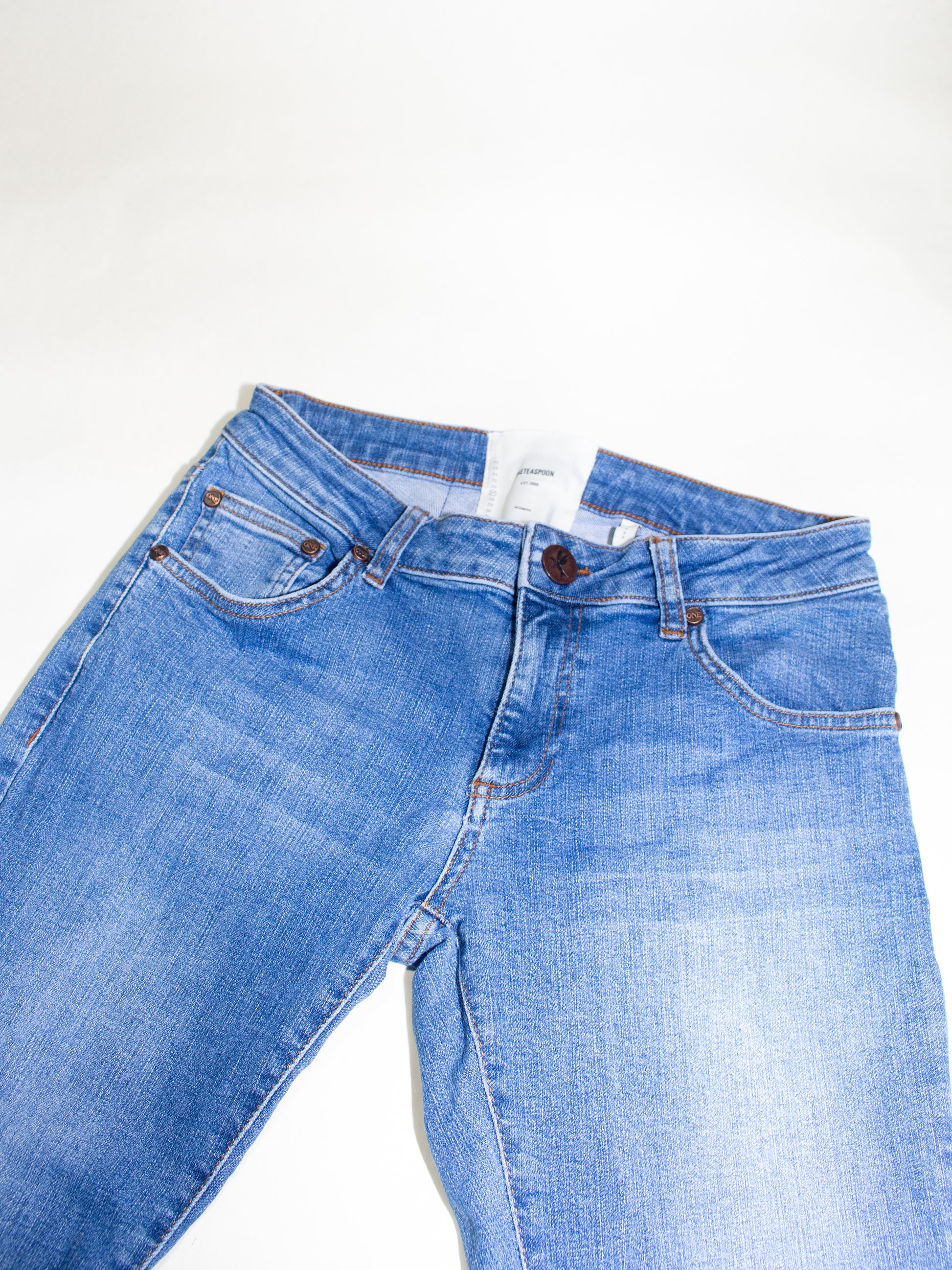 Step into timeless style with One Teaspoon's women's jeans in a versatile blue hue, crafted for both comfort and durability. These size 27 skinny jeans boast a classic button closure and a flattering regular fit, designed to complement your everyday look while providing the perfect fit. Featuring a medium fabric wash that lends an effortlessly chic vibe to your wardrobe, these denim jeans are accentuated with tasteful button details.