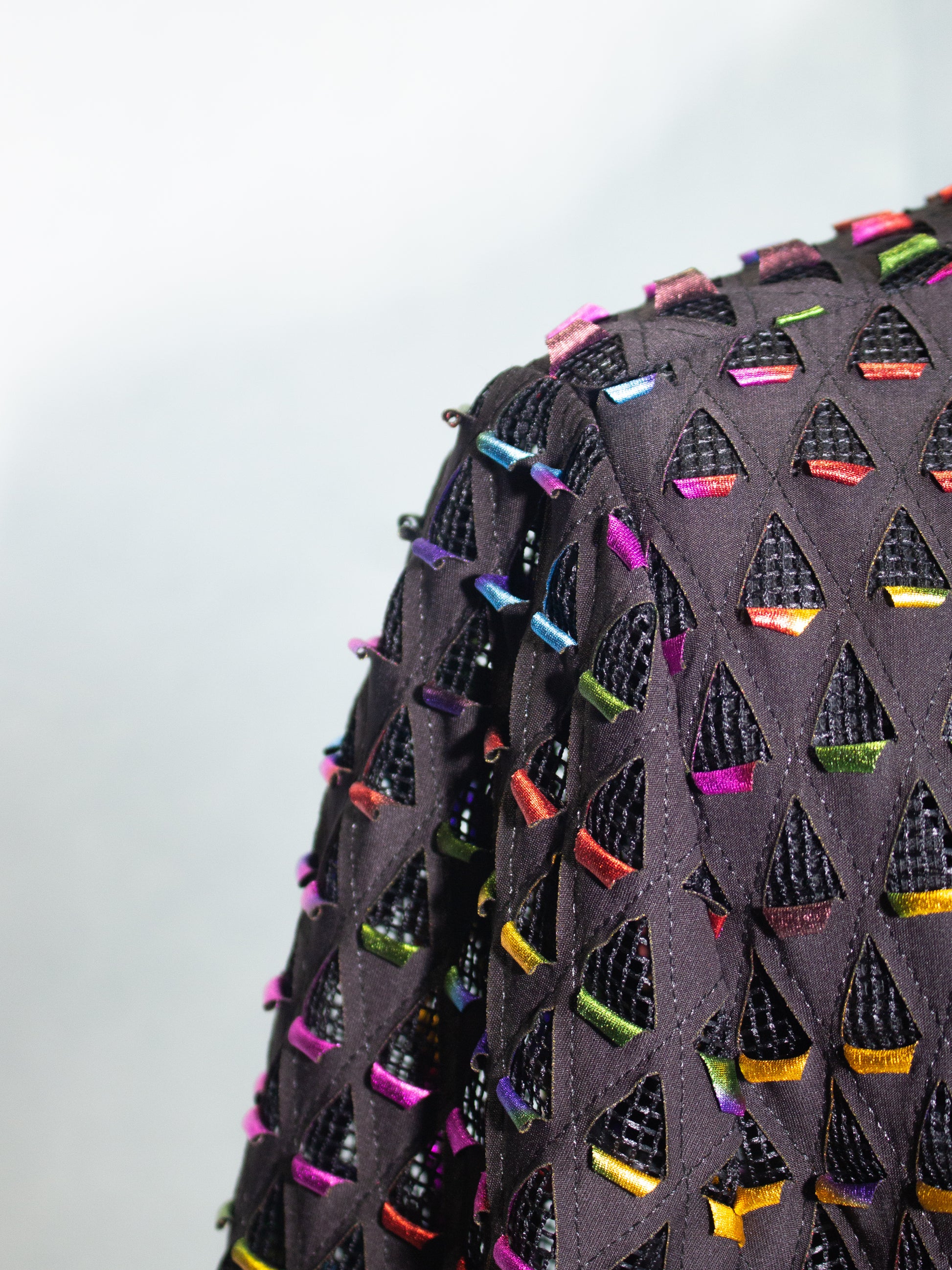 Step out in style with this eye-catching Vintage Rainbow Blazer Cardigan in size Large. The black base color is adorned with a vibrant geometric pattern that boasts a retro flair, perfect for adding a pop of color to any outfit. The mid-length cut and 3/4 sleeves offer a comfortable and versatile fit, suitable for business occasions, casual outings, or even travel. Crafted with a mesh lining for added breathability, this blazer features a classic button closure accented with sequins for a touch of sparkle.